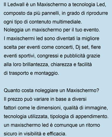 del noleggio di Maxischermi a Led per eventi e spettacoli